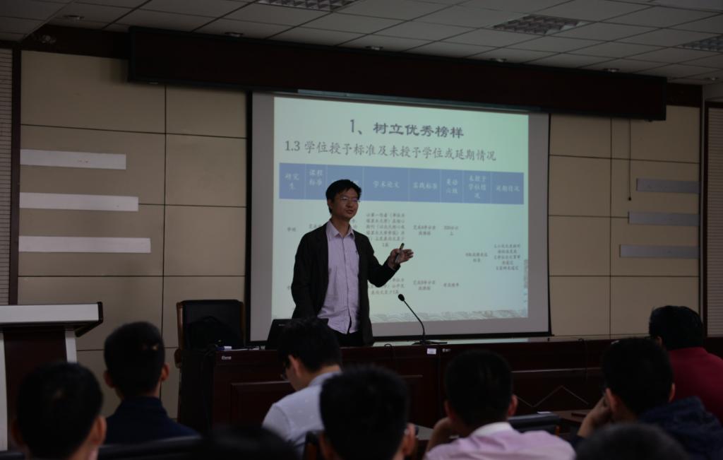 讲座中,龚䶮结合当前国内外研究生培养的实际情况,以及自身的学习和工作经历,从树立优秀榜样、建立目标、规范学术学习过程、关键性时间节点、未来人生规划等五个方面作了详细的介绍。龚䶮希望通过对关键时间节点的把控,明白什么时间该做什么事,做出合理规划,争取在有限的时间内做出更多的成绩。同时希望与会人员像胡杨树一样,能够耐高压,充满正能量,在学习的道路上不断完善自我,提升自我,度过美好的研究生生活。