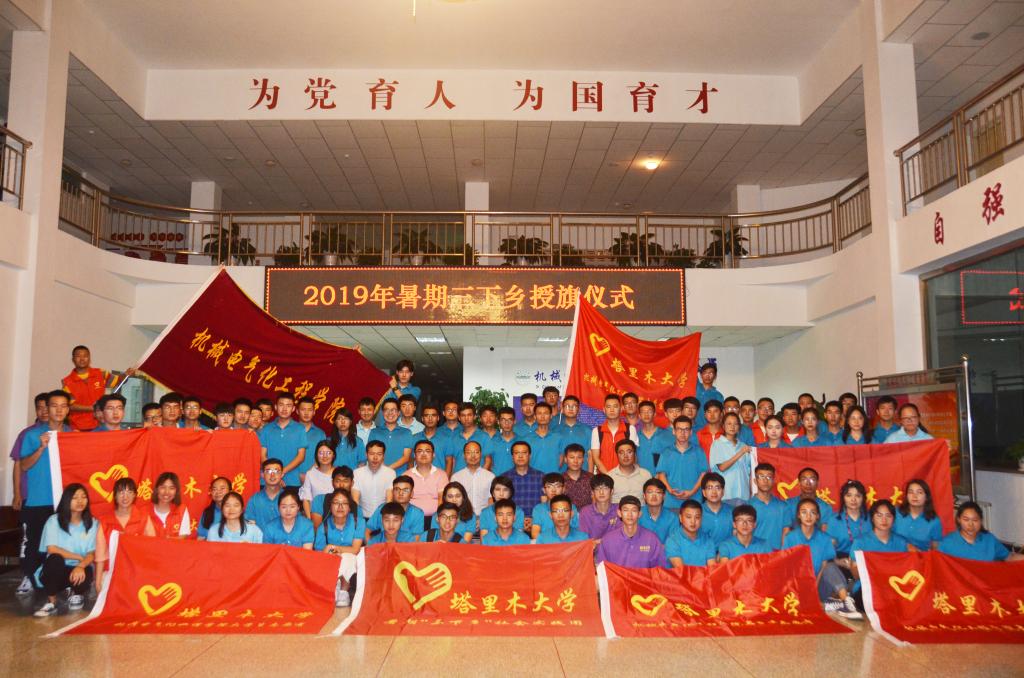 学院领导为各团队授旗。三名团队代表进行交流发言,分享了各自团队的准备情况和实践计划。张宏副院长分享了他在基层的工作的经历,希望同学们要以实际行动践行志愿者精神,展现塔大学子的责任与担当!