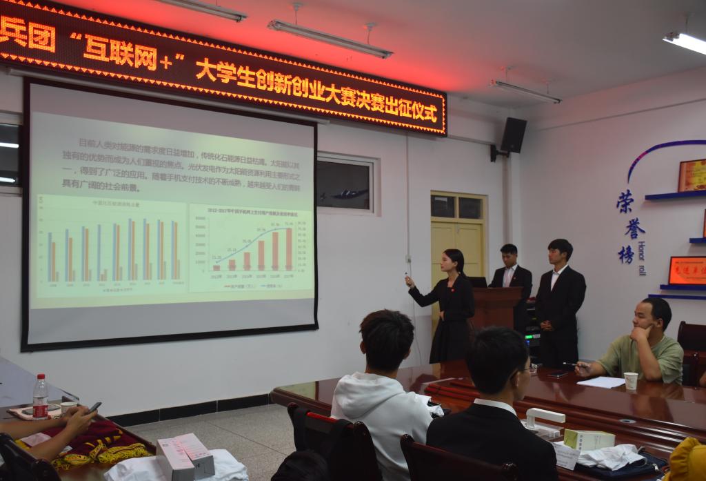8月27日晚,学院在工科楼229会议室举行赴第五届兵团“互联网+”大学生创新创业大赛决赛出征仪式,学校教务处副处长龚䶮,学院党委副书记胡松林、辅导员和入围决赛的5支队伍参加了此次出征仪式,出征仪式由陈晨主持。