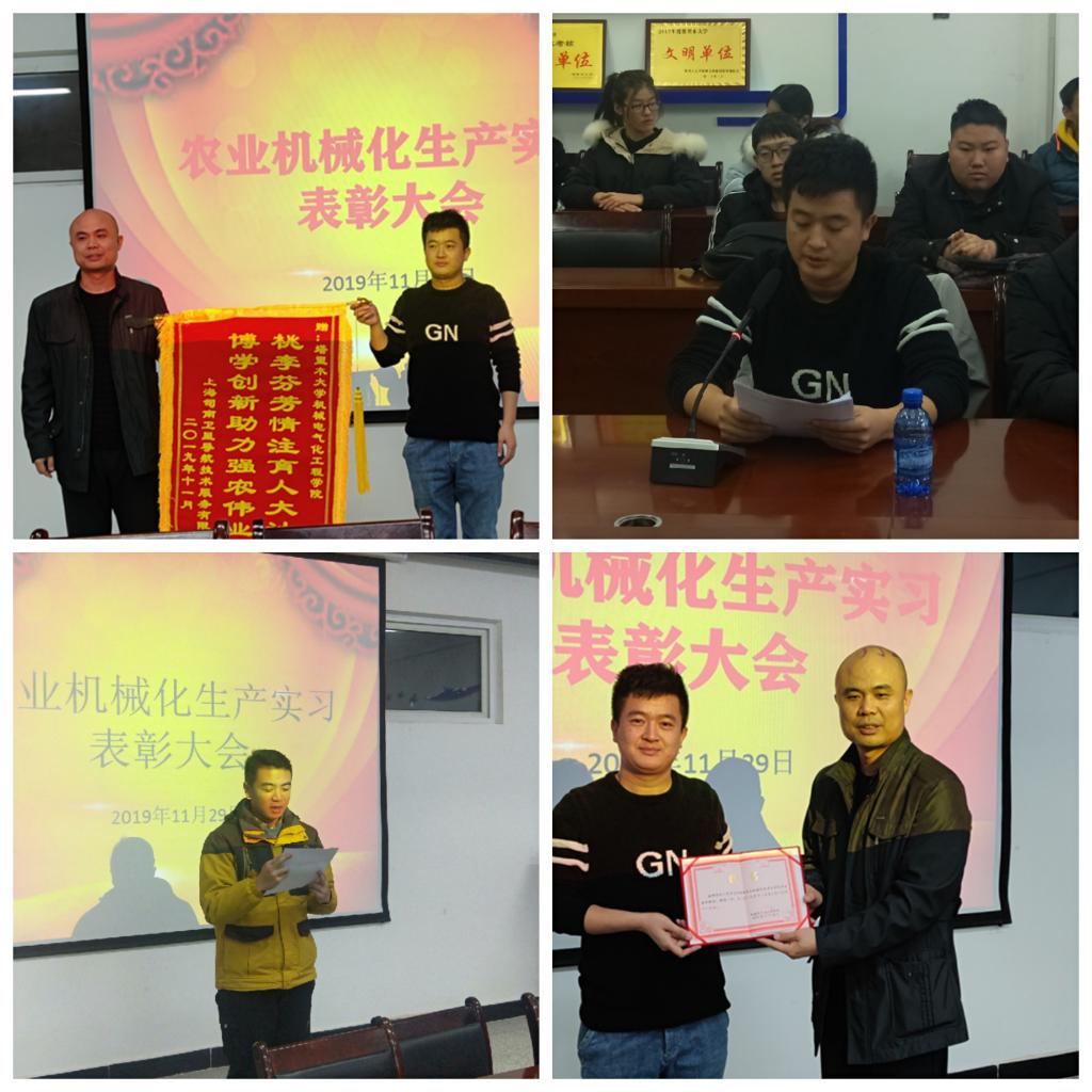 11月29日下午,学院在工科楼229会议室召开了农业机械化生产实习表彰大会,学院党委副书记、院长弋晓康,农业工程副主任李传峰,学生办公室辅导员李同玺,上海司南卫星导航技术股份有限公司负责人吴小伟一行5人出席了表彰大会,会议由李传峰主持。