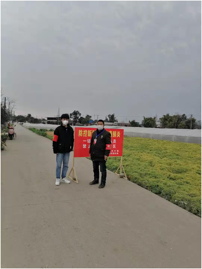 余鑫宇是机电工程18级一班的学生,家在四川省什邡市禾丰镇朝园村,志愿服务时间是早上8:30到下午6:00,主要工作是在本村做宣传工作、记录人员流动详细信息、做防控卡点工作、对路过的车辆进行登记和消毒等。他每天早上八点就在村口卡点做来访者和过路者的劝返登记工作,中午和队长换班回家吃饭,晚上才回家。他说:“面对疫情防控,我作为塔大学子,自当发扬胡杨精神。虽然没能冲到抗战一线,但要当好志愿者,为我身后的村民保驾护航,尽自己微薄的一份力。我是塔大人,是胡杨子,国家有难,人民有难,我首当其冲,义不容辞,要临危不惧。我相信冬天总会过去,春天很快会到来。”
