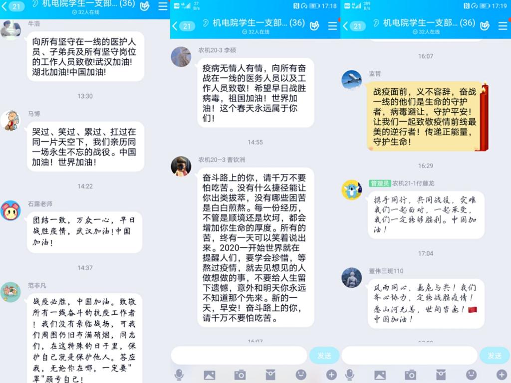 随后,支部成员根据疫情防控期间所见所闻所思和疫情防控期间如何发挥党员先锋模范作用进行深入探讨,相互学习,共同进步。学生党员王思栋谈到:“很多人,很多事,从前素昧平生,之后却铭记于心。还有许多,永在心中,要向奋战在一线的同志学习,愿山河无恙,人间皆安。大家纷纷表示,要继续努力、强化学习,甘于奉献,为打赢疫情防控阻击战贡献自己的力量!”