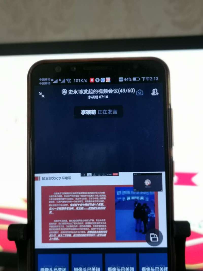 学办主任李勇点评说:各团支部要继续发扬优良传统,积极带领广大团员投身疫情防控,展现胡杨青年的责任与担当。