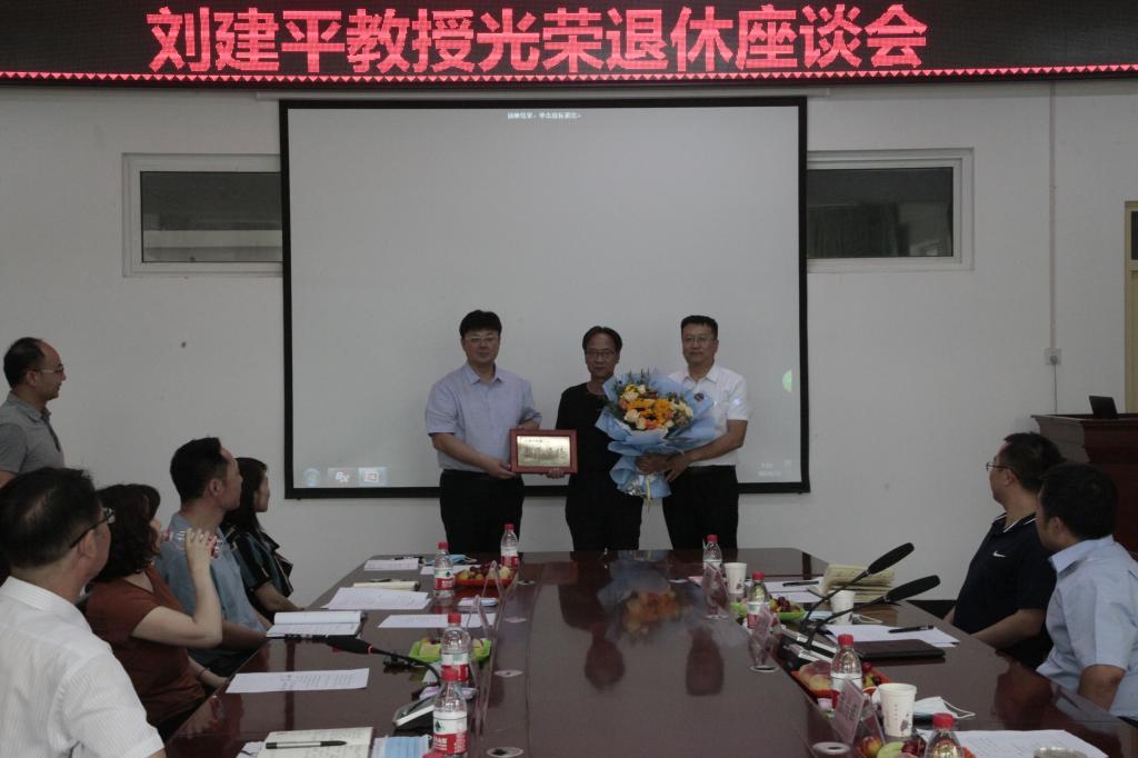刘建平谈了退休感言,回顾了他在校38年的工作场景,感谢校领导和同事们长期以来的支持和关心,让他享受到退休的光荣。他表示,退休后一定会保重身体,发挥余热,为学校、学院更好更快发展贡献应有的力量。