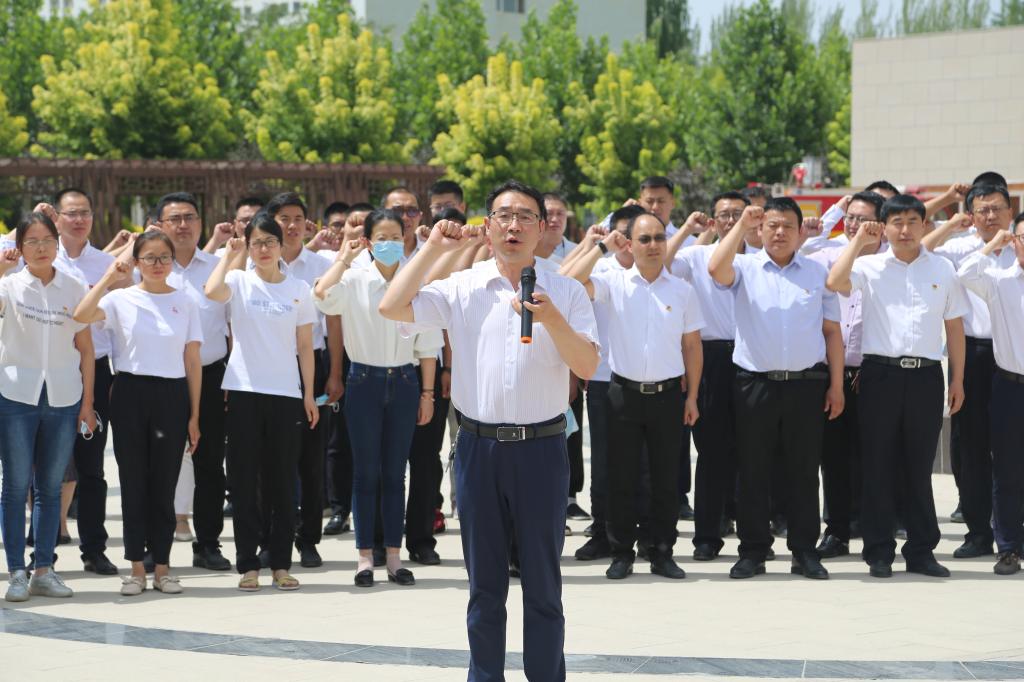 “我志愿加入中国共产党,拥护党的纲领......”,学院全体在校师生党员齐聚在新图书信息大楼前,在学院党委副书记、院长王旭峰的带领下面向党旗,高举右手,庄严宣誓,拳拳忠心,字字铿锵,他们用赤诚的红心表达对党无限的热爱和最衷心的祝福。