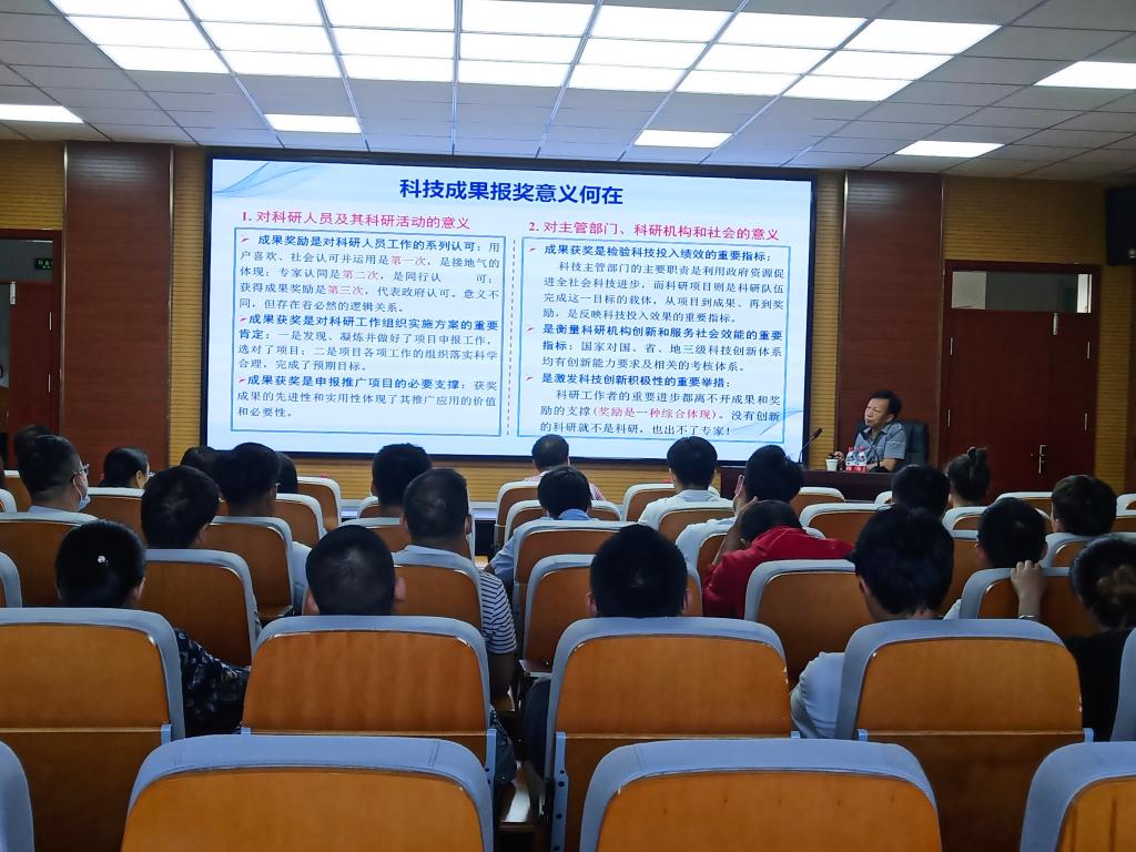 尹君亮研究员作了题为《浅谈科技成果申报奖励》的学术报告,从申请成果奖励的意义、报奖推荐书材料提纲解读、报奖材料的整理与组织、把握的要领和内容、评分标准的学习与解读等七个方面作了详细的阐述。