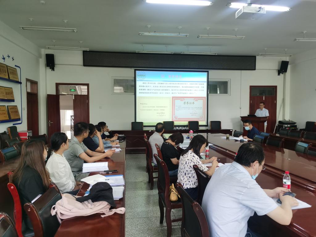 青年教师导师制培养过程评价表》逐项评分;各位专家对青年教师在培养期所做的工作给予了充分的肯定,同时也针对每一位教师的教学、科研工作给出建议。希望青年教师在往后的教学工作中投入更多精力,多进行教学改革与实践,并尽量融入更多教学手段,使教学手段与课程讲授有机结合,培养驾驭课堂的能力,达到更好的教学效果。
