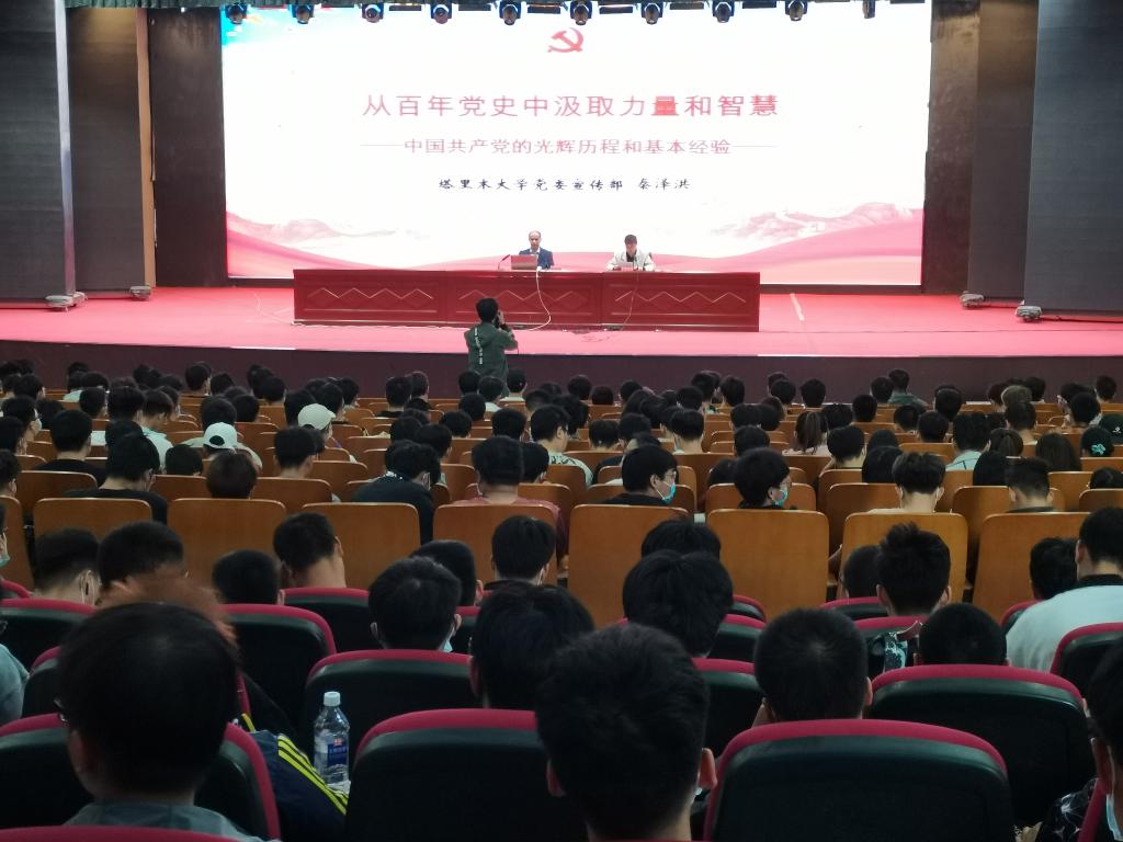 聆听百年党史,承续伟大梦想。4月22日下午,学校党史学习教育宣讲团成员、党委宣传部副部长秦泽洪为学院党员干部作宣讲报告,学院600余名师生在行政楼报告厅聆听了报告,由党委书记王红飙主持。