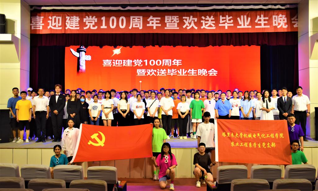 时光荏苒,且待芳华。为庆祝中国共产党成立100周年,歌颂党的伟大成就,继承和发扬党的光辉传统和优良作风,同时为了表达对毕业生的真挚祝福,5月29日晚,农业工程系教工党支部、学生党支部在大学生活动中心报告厅举办喜迎建党100周年暨欢送毕业生晚会。农业工程系学生党支部书记张哲等以及特邀嘉宾和广大师生共计约200余人观看了晚会。
