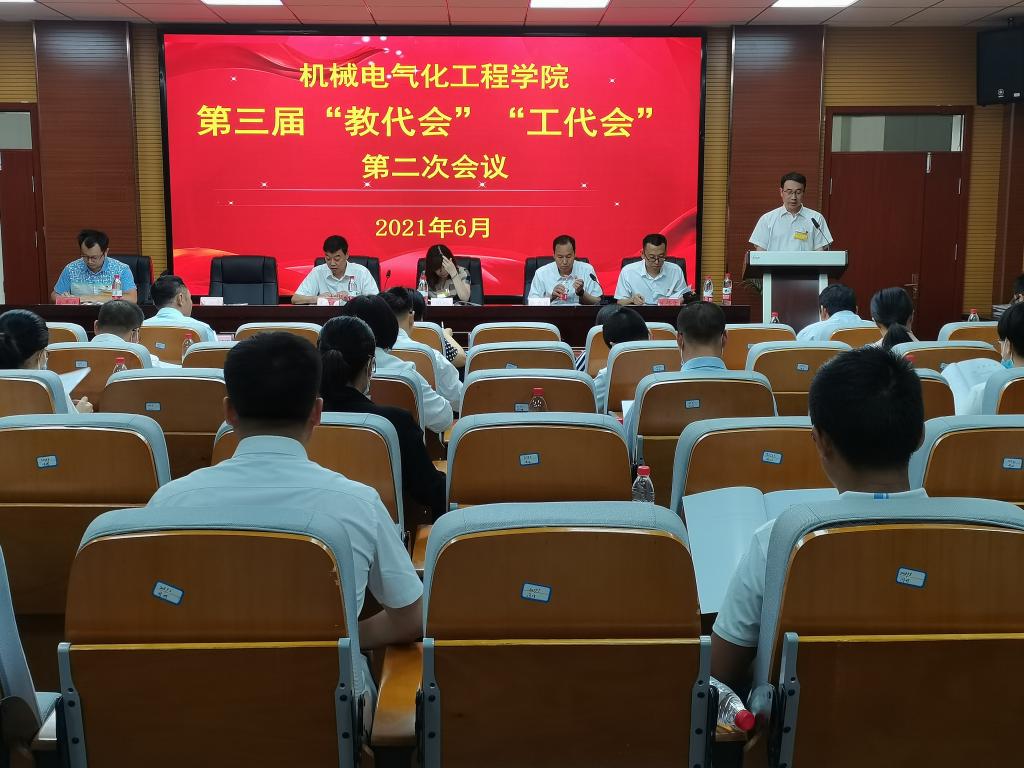 6月16日,学院第三届“教代会”暨第三届“工代会”第二次全体会议召开。特邀兵团工会副主席周岭、学院党委书记王红飙、党委副书记、院长王旭峰、副院长张有强、徐志佳、工会主席范修文及全体正式代表参加大会。会议由张有强主持,在工科楼318会议室举行。