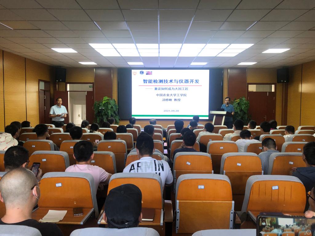 汤修映教授作了题为《智能检测技术与仪器开发——兼谈如何成为大国工匠》的报告,主要围绕“我们身边检测设备的例子、智能检测与检测方法、仪器制造与工匠精神”等几个方面作了深入的讲解。学术报告在机电院工科楼318会议室,机电院党委副书记、院长王旭峰,副院长张宏、张有强及师生代表听取学术报告。