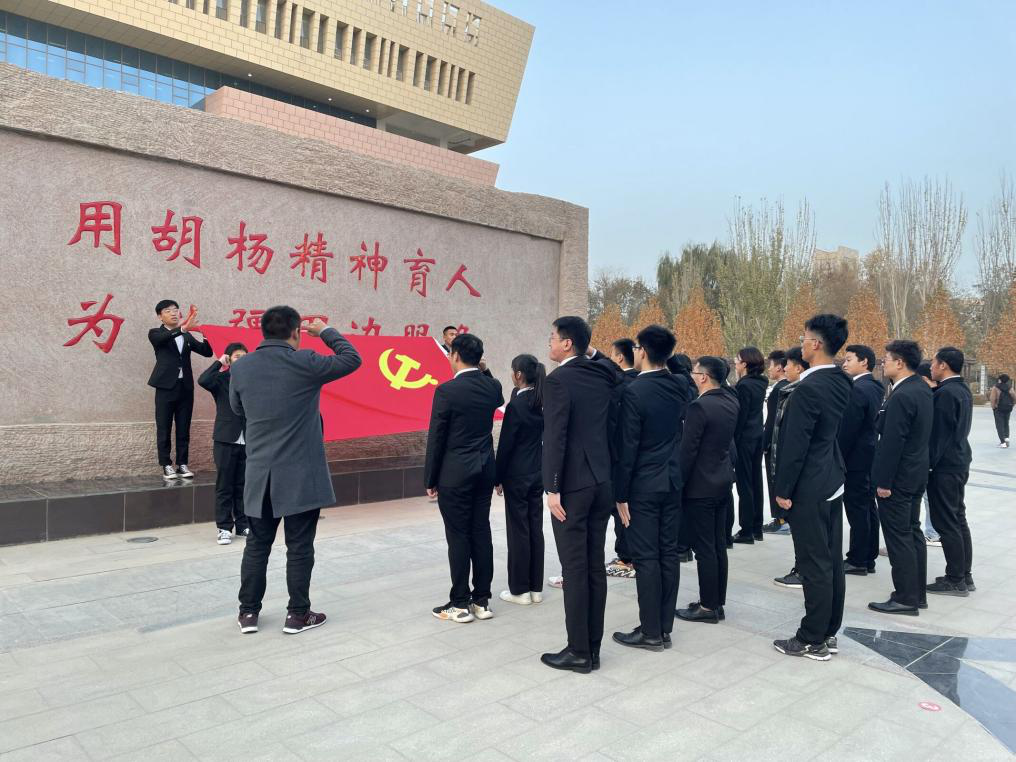 11月10日,学院农业工程系学生党支部在新图书馆门前举行新党员入党宣誓、老党员重温入党誓词活动。全体党员参加活动。