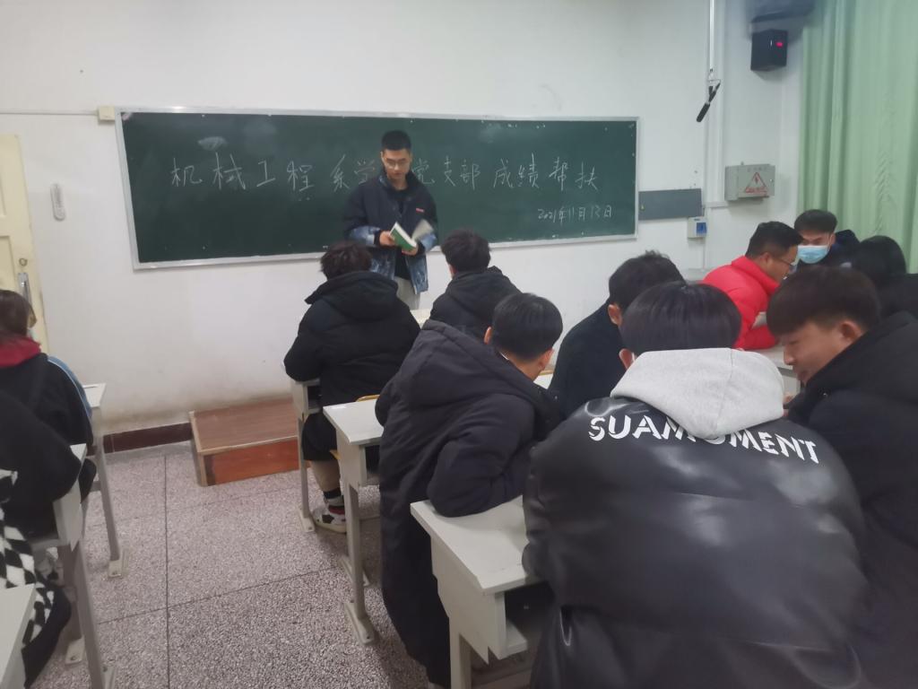 为使学业困难的学生能够补齐课业,提高成绩在考试来临之际,尽早的发现问题、分析问题、解决问题11月13日,机械工程系学生党支部开展“朋辈帮扶,携手共进”主题课业帮扶活动活动在2号楼107、108教室进行。