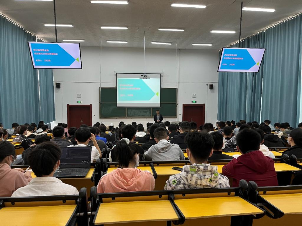 4月16日,学院党委书记王红飙在校本部一号楼阶教向毕业生做题为”抓好春季黄金期,促进更充分更高质量就业”的报告,结合自身数十载工作经历和新冠疫情背景下的大学生就业难问题做出剖析,字里行间,语重心长。他指出,学生管理与服务是推进就业工作的重要保障,告诫毕业生,从长期大势中认清当前形势,从经济走势中判断未来趋势,从复杂局面中寻找发展机遇,停止观望,找准定位,让自己在“内卷化”的时代革新中先发制人,占据有利位置,为自己的生活平添一份基础的保障。