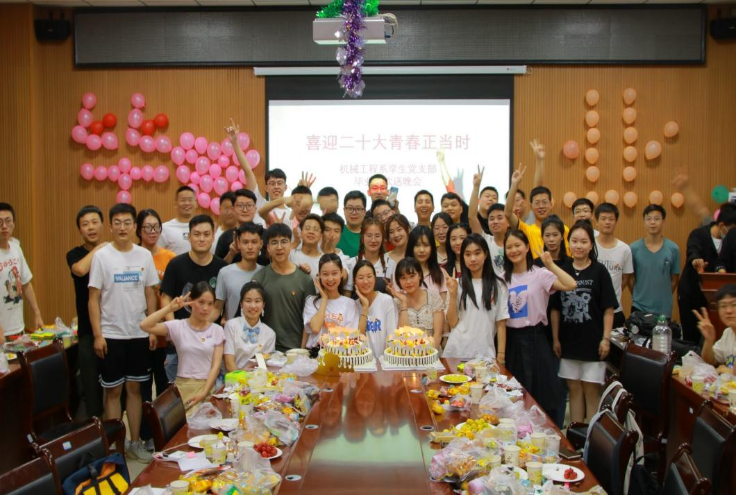 6月2日晚上,机械工程系学生党支部开展了以“青春二十大 喜迎正当时”为主题的毕业生党员欢送会暨集体政治生日会,学院党委副书记、院长王旭峰,副院长张宏,机械工程系党总支书记廖结安,机械工程系学生党支部书记赵澳,大四毕业生共同参加此次活动,并为毕业生党员送上最真诚的祝福。活动在东扩区D108会议室进行。