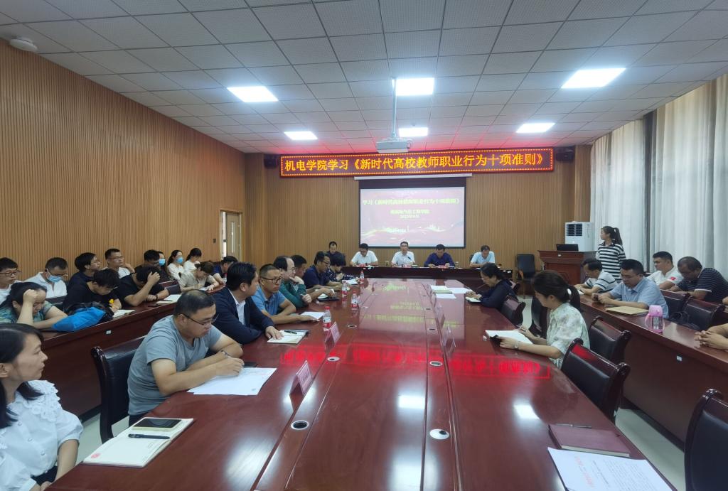 于9月7日下午,在新校区D108会议室召开全体教职工大会组织学习《新时代高校教师职业行为十项准则》,会议由学院党委书记王旭峰主持。