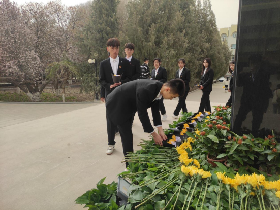 4月5日上午,在巍然屹立的王震将军铜像前,机电院全体学生党支部党员满怀敬仰、沉痛悼念英雄先烈。