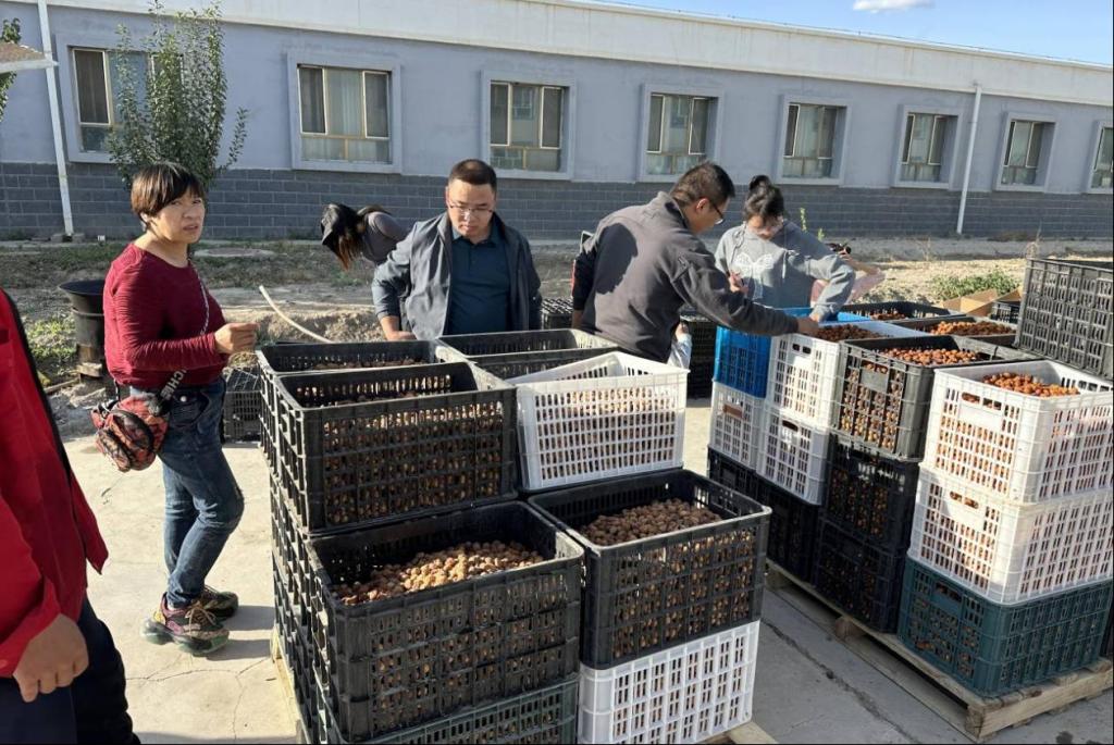 9月23日至24日,学院吊干杏科技服务团队成员王红飙、郭文松、王宪磊、胡灿、邢剑飞等到第一师四团吊干杏种植基地、吊干杏加工厂等开展科技服务工作,在吊干杏种植基地,团队成员与农户深入交流,了解今年吊干杏受天气影响情况,就吊干杏来年如何预防冰雹等灾害给予了指导,对吊干杏加强营养管理和病虫害防治与农户探讨交流,提高吊干杏树的产量和品质。