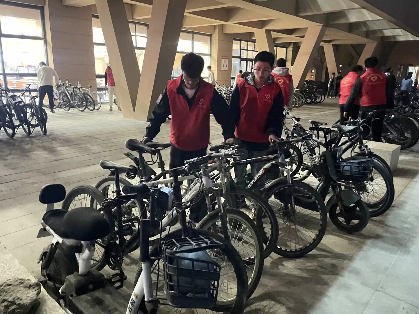 随后,全体成员分组进行自行车摆放工作。根据宿舍楼和停车区域的情况,他们有条不紊地将自行车有序地摆放在指定的位置,确保通道畅通,不影响他人出行;并针对公共区域存在安全隐患进行逐一排查,就区域卫生展开彻底、全面清扫。同志们积极配合,共同营造了一个整洁有序的自行车停放区域。