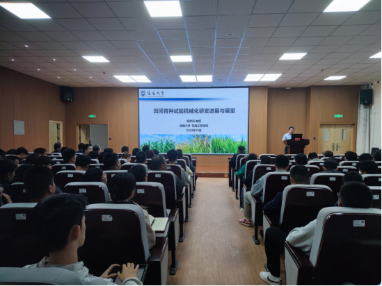 师生作了题为《田间育种试验机械化研发进展与展望》的专题讲座。机电院师生代表100多人听取了讲座。讲座由学院院长张宏主持,在学院D109会议室举行。