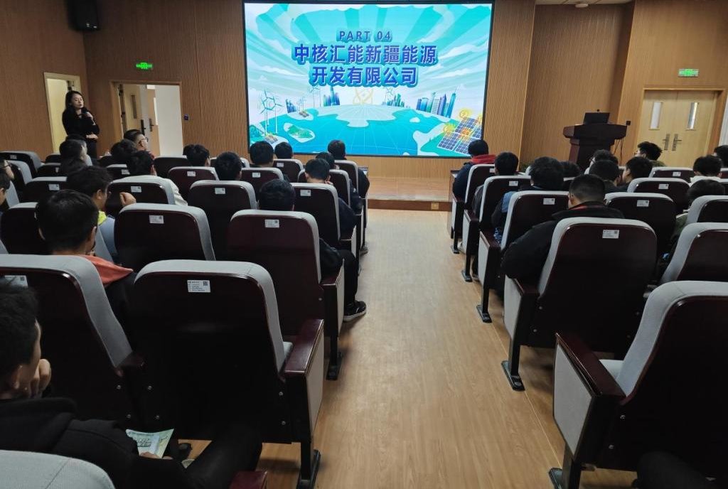 随后在新校区一期D109报告厅举行中核汇能新疆能源开发有限公司企业招聘宣讲会,沈婷助理向同学们详细地介绍了公司的总体概括、发展历程、肉漫画、职业发展等方面的信息,并邀请毕业生加入中核汇能,共同推动新能源事业的发展。在宣讲会现场,公司招聘团队热情解答同学们的提问。