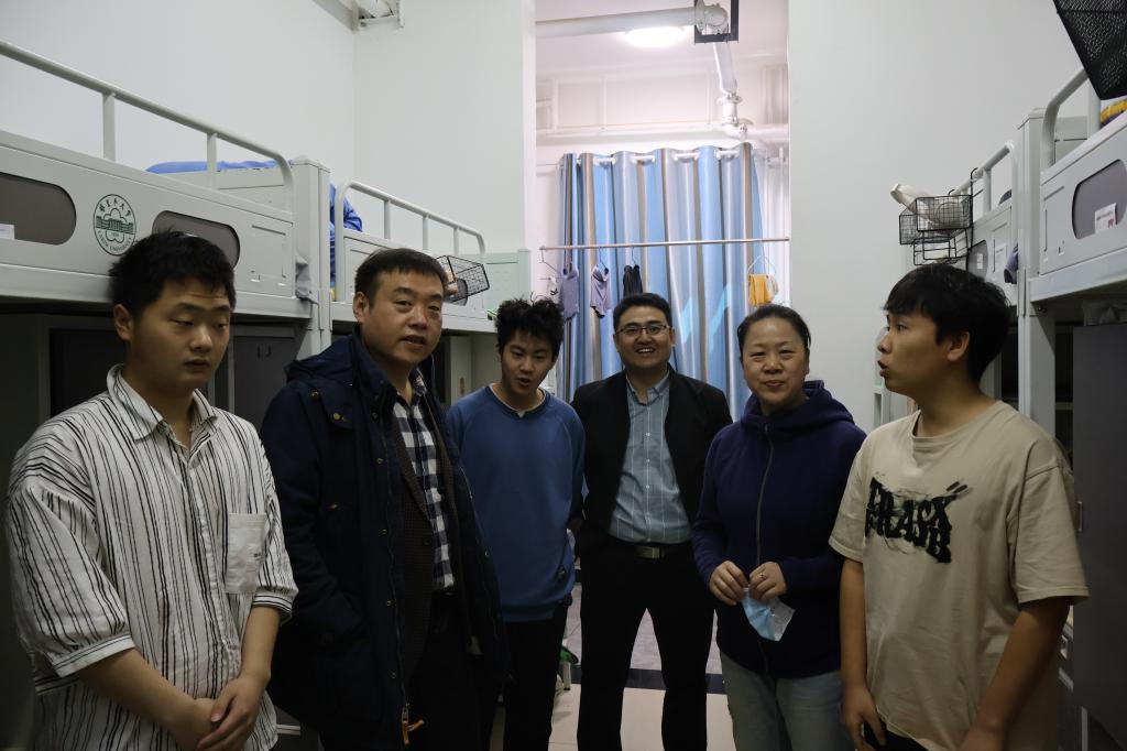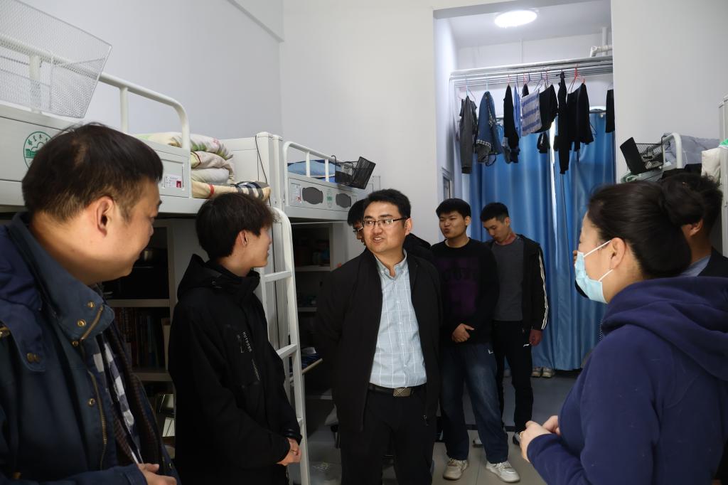 钟毅一行人来到新校区一期学生公寓1号楼、2号楼、3号楼、新校区三期10号楼进行走访慰问,向他们致以节日的问候和祝福,深入了解学生们的生活学习情况,认真倾听他们的心声,和他们唠家常、讲心事,并叮嘱同学们要坚定理想信念,努力学习拼搏,共同构建和谐、平安、文明的宿舍氛围,注重体育锻炼,保持身心健康,在青春的赛道跑出好成绩。