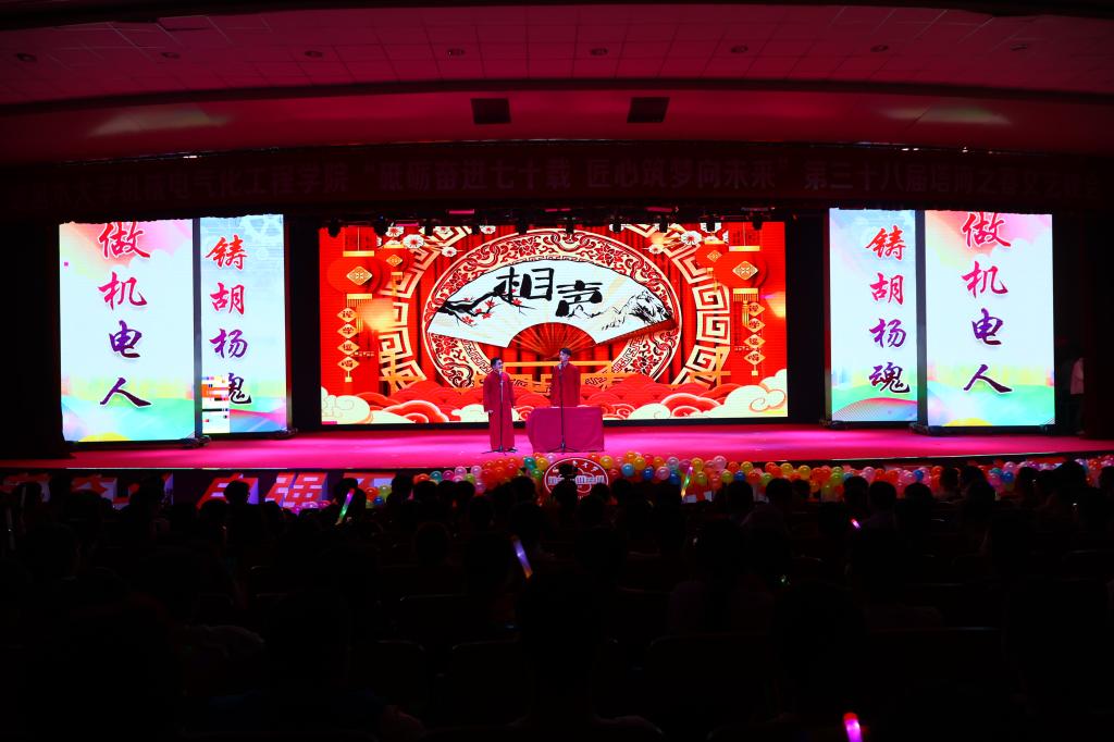 党委常委、副校长汤智辉,学院党委书记王旭峰,党委副书记、副院长(援疆)、纺织服装学院院长钟毅,学院银龄教师、全院师生共同参加本场晚会。