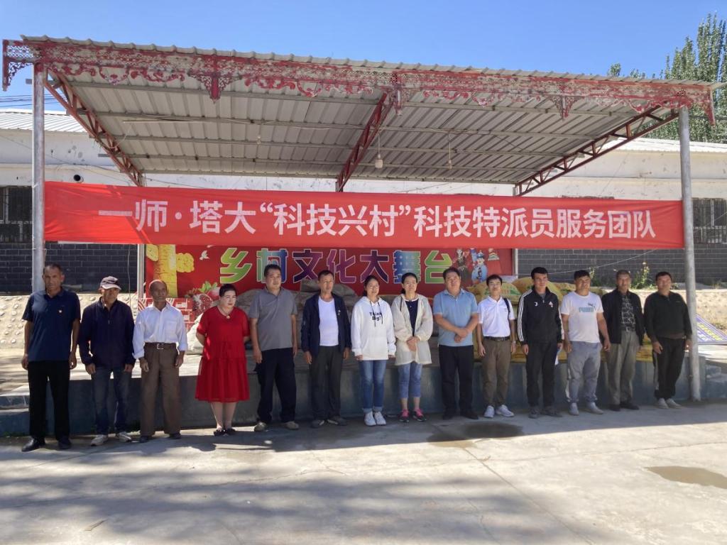 “科技兴村”共兴工程科技特派团队第四分队刘媛杰、余复昌与结对连队5团7连党支部书记敖书及支委成员一行,赴温宿县博孜墩乡提坎库如克村开展“科技兴村”科技服务活动。