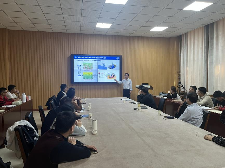 的邀请,华中农业大学廖庆喜院长在新校区一期机电楼D102会议室作题为“智能农业与机械化未来:效率、可持续与创新”专题报告。报告由学院党委书记王旭峰主持。