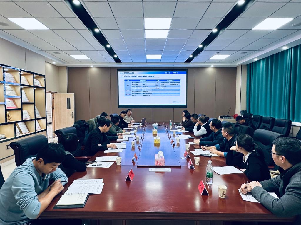 会上,杨明、文武强认真听取了学院职业技能培训认定中心主任王建平关于职业技能人才培训、评价工作汇报,详细了解了学院在职业技能培训、认定、经费使用以及人才培养等方面的工作进展与成果。杨明对学校在实践教学方面的投入和成效给予了充分肯定,同时强调职业技能人才评价工作要严格标准,确保评价结果的科学性与公正性。