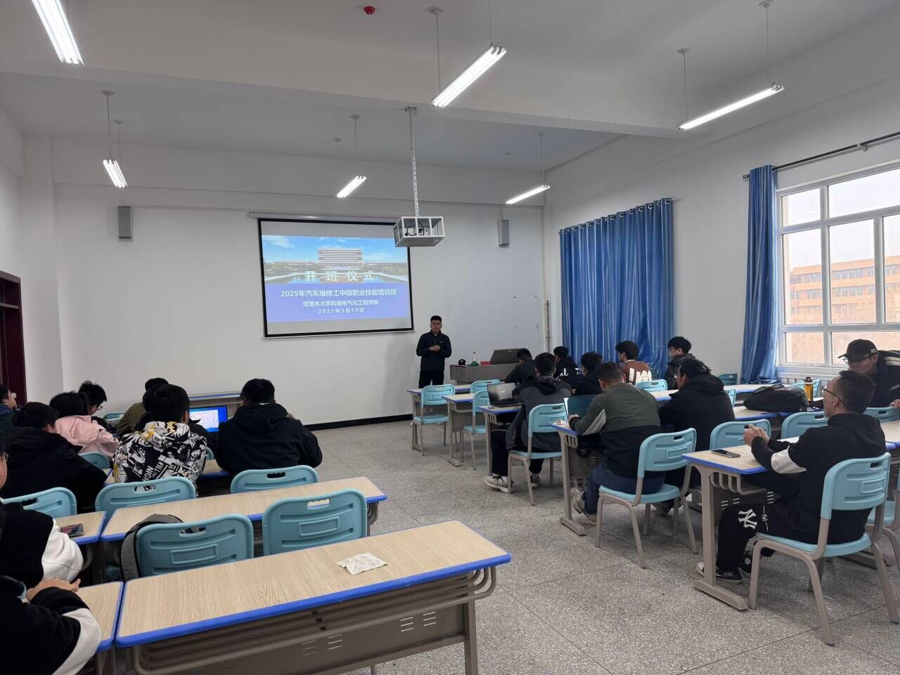积极作为,正式启动电工、车工、汽车维修工职业技能培训。此次培训吸引了众多学生报名,开班仪式现场气氛热烈,学生们满怀期待。