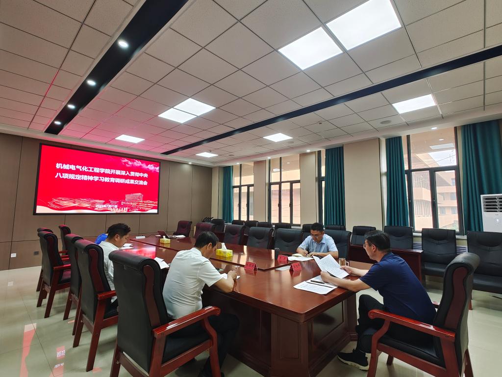 在机电楼D323会议室召开深入贯彻中央八项规定精神学习教育调研成果交流会,会议认真学习习近平总书记重要讲话精神并通报违反中央八项规定精神典型案例。学院党委书记王旭峰主持会议。