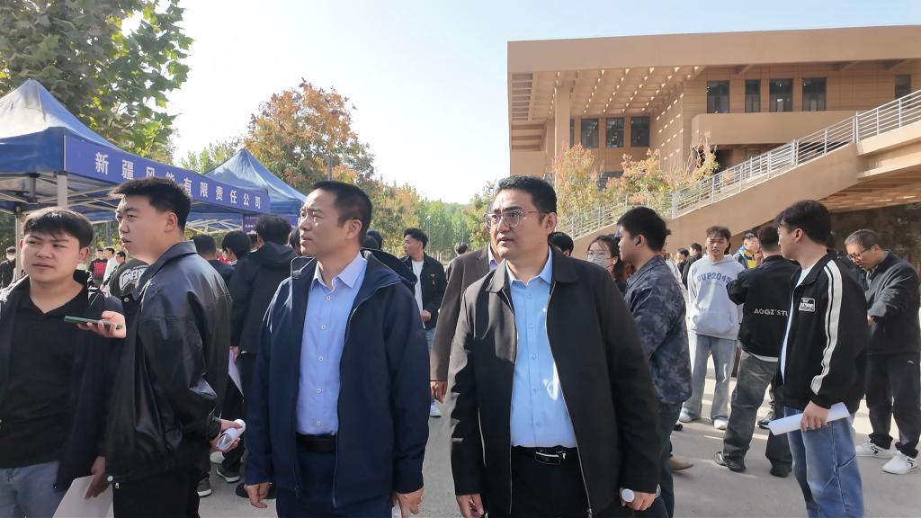 2025年秋季专场招聘会在新校区1期C栋停车场顺利举行。学校党委常委、副校长张宏荣莅临现场进行交流,并对工作予以指导。