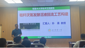 孙勇教授作了主题为《秸秆厌氧发酵沼液回流工艺构建》的学术报告,主要从沼液回流技术现状、秸秆厌氧发酵沼液回流工艺、秸秆厌氧发酵沼液回流技术展望三个方面展开,并针对于农业废弃物高值化利用技术及装备方面的问题与师生开展了交流。