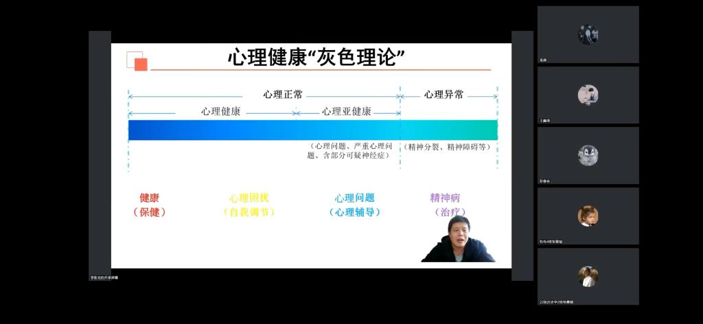 学院邀请培训师吴垠、李新龙、夏慧玲、鲁宁宁分别作了题为《心理委员的工作概述》《团体心理素质拓展》《大学生常见的心理问题与心理疾病》《心理危机的识别与干预》专题培训。会后,参训学员围绕“如何做好心理委员工作”进行了分组研讨。