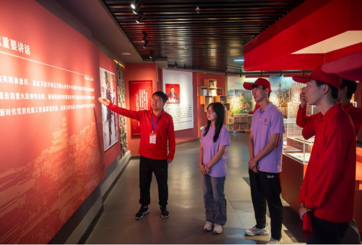 在喀什市铸牢中华民族共同体意识教育基地,团队成员开启了对民族历史的深入学习。教育基地内丰富的资料,生动地展现了各民族在历史长河中的发展历程、文化特色以及相互之间的交流融合。团队成员积极交流讨论,进一步明确了传承民族文化对于铸牢中华民族共同体意识的重要性,深刻领悟到各民族之间应像石榴籽一样紧紧抱在一起,共同团结奋斗,共同繁荣发展。