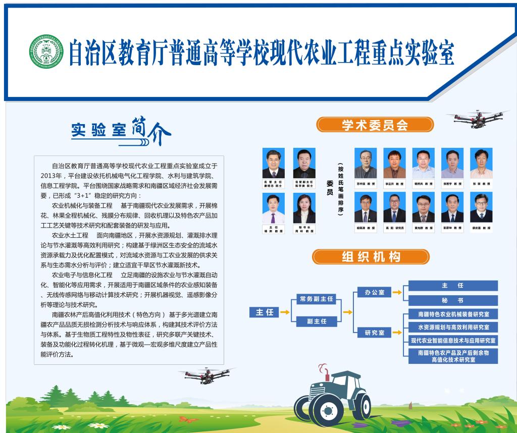 现代农业工程重点实验室2013年1月获得自治区教育厅批准,为省级重点实验室。